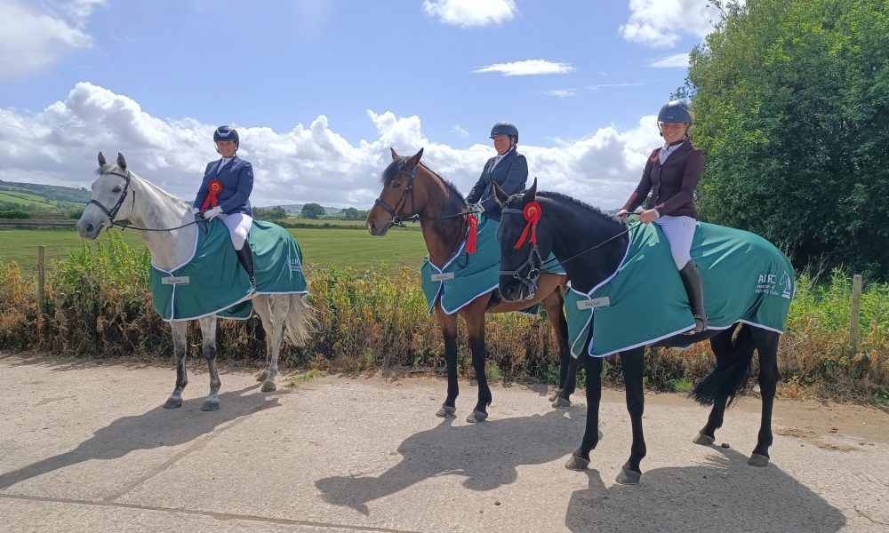 The AIRC West Region’s Connolly’s RED MILLS dressage championship qualifier took place on Sunday 25th of April, at Eglinton Equestrian Centre. Twenty riders rode a total of 32 tests and provided a great day of sport. The team competition is the jewel in the crown of the qualifier, with super rugs supplied by Connolly’s RED MILLS for each member of the winning team on the day. Inishowen Riding Club took the win this year, with the “Inishowen Serpentines” team members Andrea Browne, Cate O’Neill and Lynne Thompson riding out of their skins to take the win with a team score of 208.43. With 7 teams entered in the qualifier, competing teams were assured of two qualification spots, and Letterkenny Riding Club took the second spot with a team score of 202. Their “Letterkenny Pole Stars” team of Francis McNicholl, Suzanne Deeney Wylie, Jennie Peoples and Libby Mooney can look forward to a sociable outing to Mullingar in early September. Coming a close third with a score of 198.69 was the Donegal Gaeltacht Riding Club “Ór” team of Mary Walker, Liz Potter and John McDaid. The fourth place rosettes went to Stracomer Riding Club “Strictly Come Prancing”, while fifth was taken by the second Donegal Gaeltacht team, the “Glas” team of Jenny Bonner, Hiudai Harkin and Liz Potter. The final set of rosettes for sixth place was taken by Stracomer’s “Saddle Sores”, with Amy McGarvey, Clodagh Brady and Louise Burke finishing on a smart score of 187.21