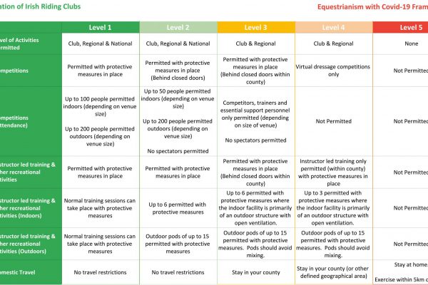 All activities suspended as Level 5 restrictions introduced nationwide