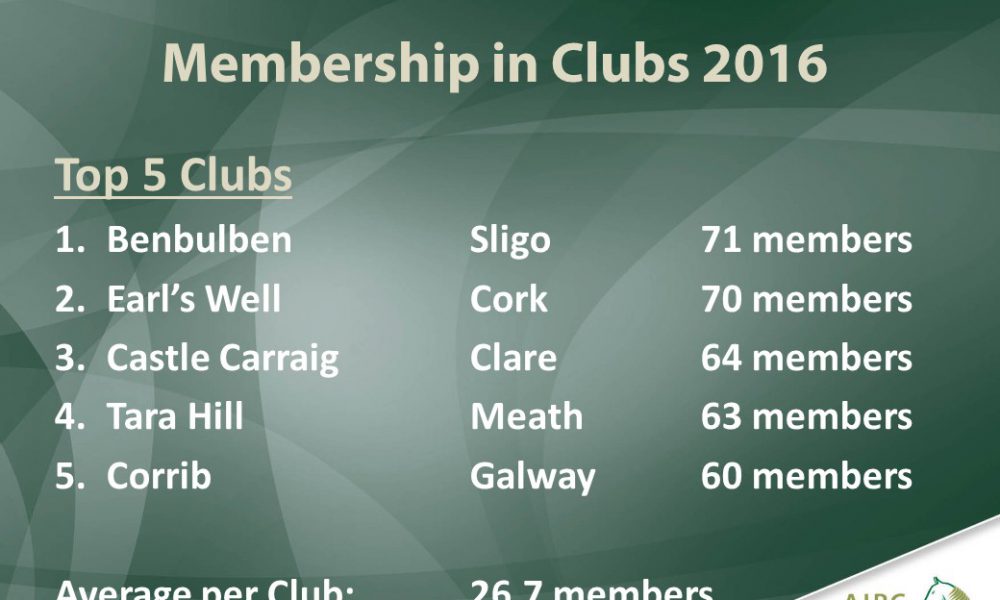 Castle Carraig Riding Club increased its membership by 42% to enter the top 5 for the first time while Tara Hill Riding Club continued its improvement to move into fourth place.